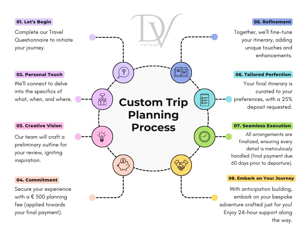 Envision an exquisite sojourn through Italy, France, or Albania, where every moment is crafted to create unforgettable experiences.FILL THIS FORM AND Start planning with us today! Dive into bespoke journeys, curated with passion, dedication, and a touch of sophistication. Embrace your unique style, as exceptional as you are! Be here, enjoy this moment. We encounter amazing nature, locals and traditions.Ready for the Experience? Look! There is so much beauty around us— nature, art, culture, exquisite cuisine, fine wine, passion and the joy of connection! It’s all here to make your heart sing.Let’s explore and find the magic of Dolce Vita Voyage! Custom Trip Planning Process Embark on a seamless journey with our refined 8-step planning process, where your dream destination awaits. Contact Our Travel Designers to Begin Your Journey Today! Get In Touch +355 69 78 09 132 info@dolcevitavoyage.com Dolce Vita Voyage is a brand of Active Albania with VAT Number L92719002S and address: Rr. Pjetër Bogdani, Nd. 10, H. 5, Apt. 28, 7th Floor, 1019, Tirana, Albania. SEND US A MESSAGE Please enable JavaScript in your browser to complete this form.Name *Email *Subject *Comment or Message *Send Message
